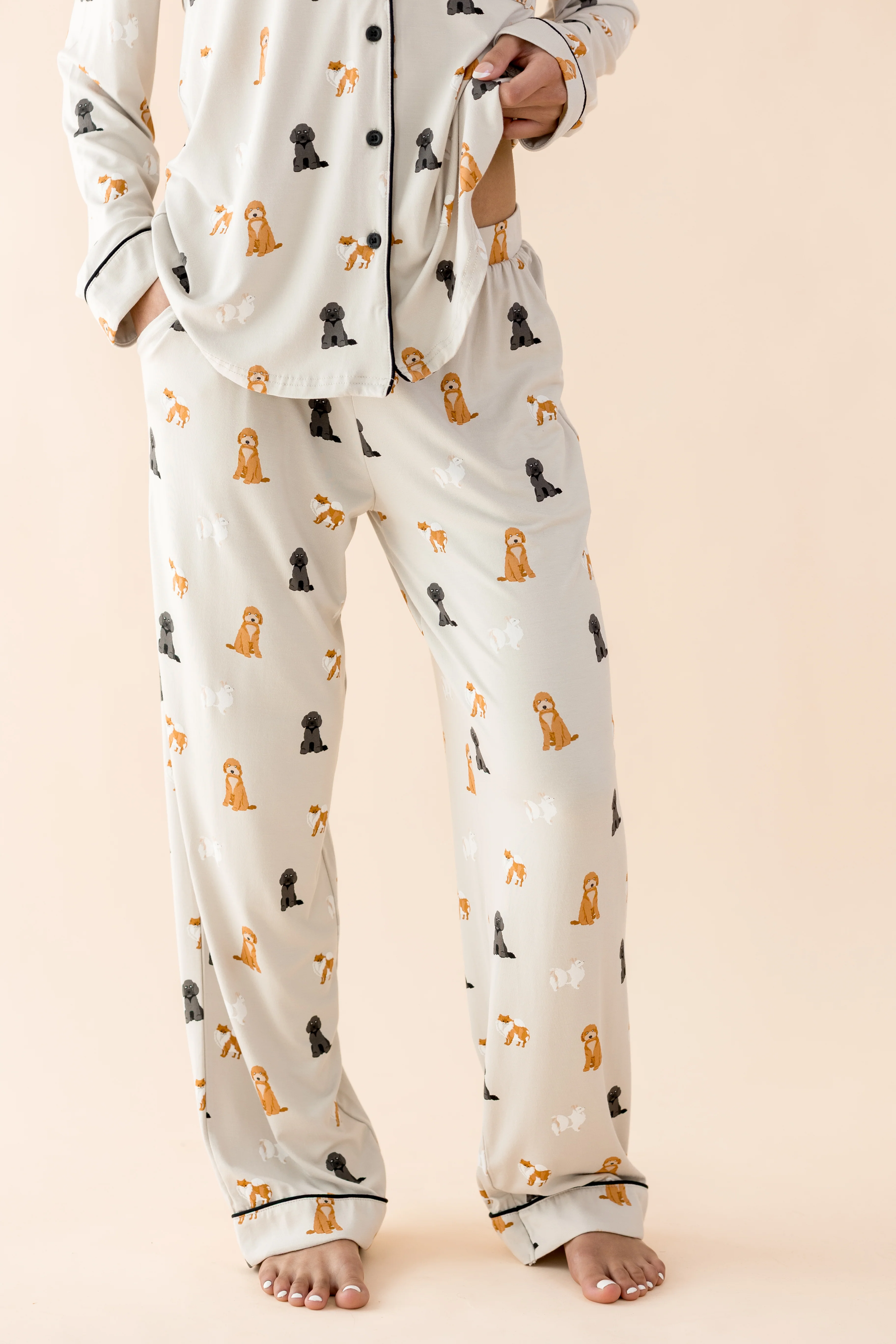 Long-Sleeved Women's Pajama Set in Fluffy Dog