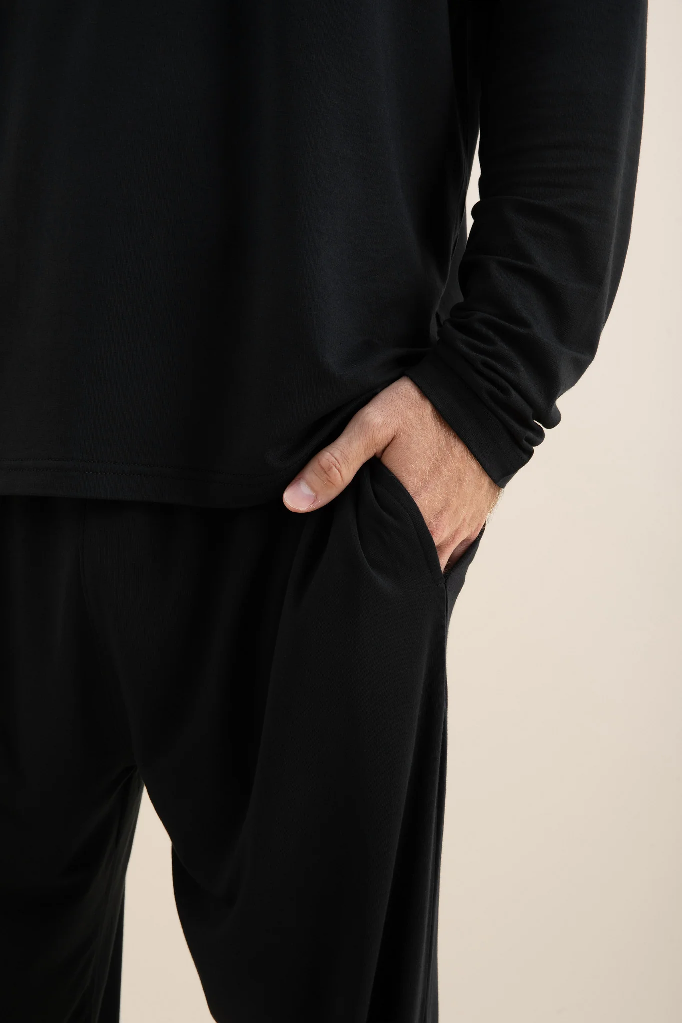 Our rayon made from bamboo provides a softer-than-ever experience and offers supreme breathability to even the hottest sleepers. The midnight color of this men’s jogger set easily transitions from night to day and is versatile enough to be worn around town or at home. Matching with your little one will delight them to no end, so we have lots of clothing options in this simple midnight color.