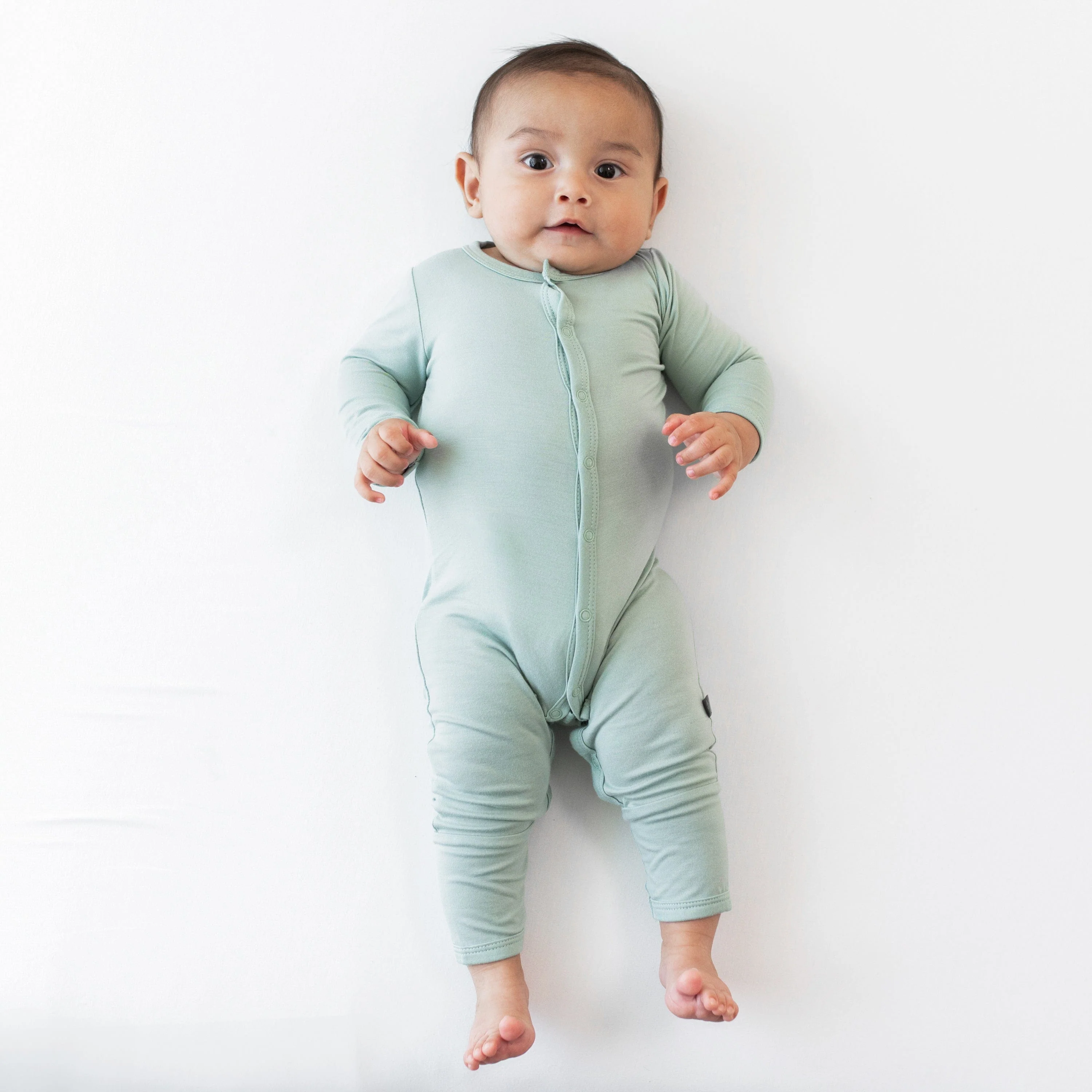 Soothe your baby into a blissful slumber with buttery soft bamboo pajamas that can help calm the symptoms of itchy eczema and aid baby’s temperature regulation to help them sleep comfortably all night. Embrace nature’s tranquil hues with green infant pajamas featuring our core color, Sage, a pale grey-green that exudes serenity. Available in sizes Newborn through 18-24 months, our footless snap pajamas will be a staple in every size as your little one grows!