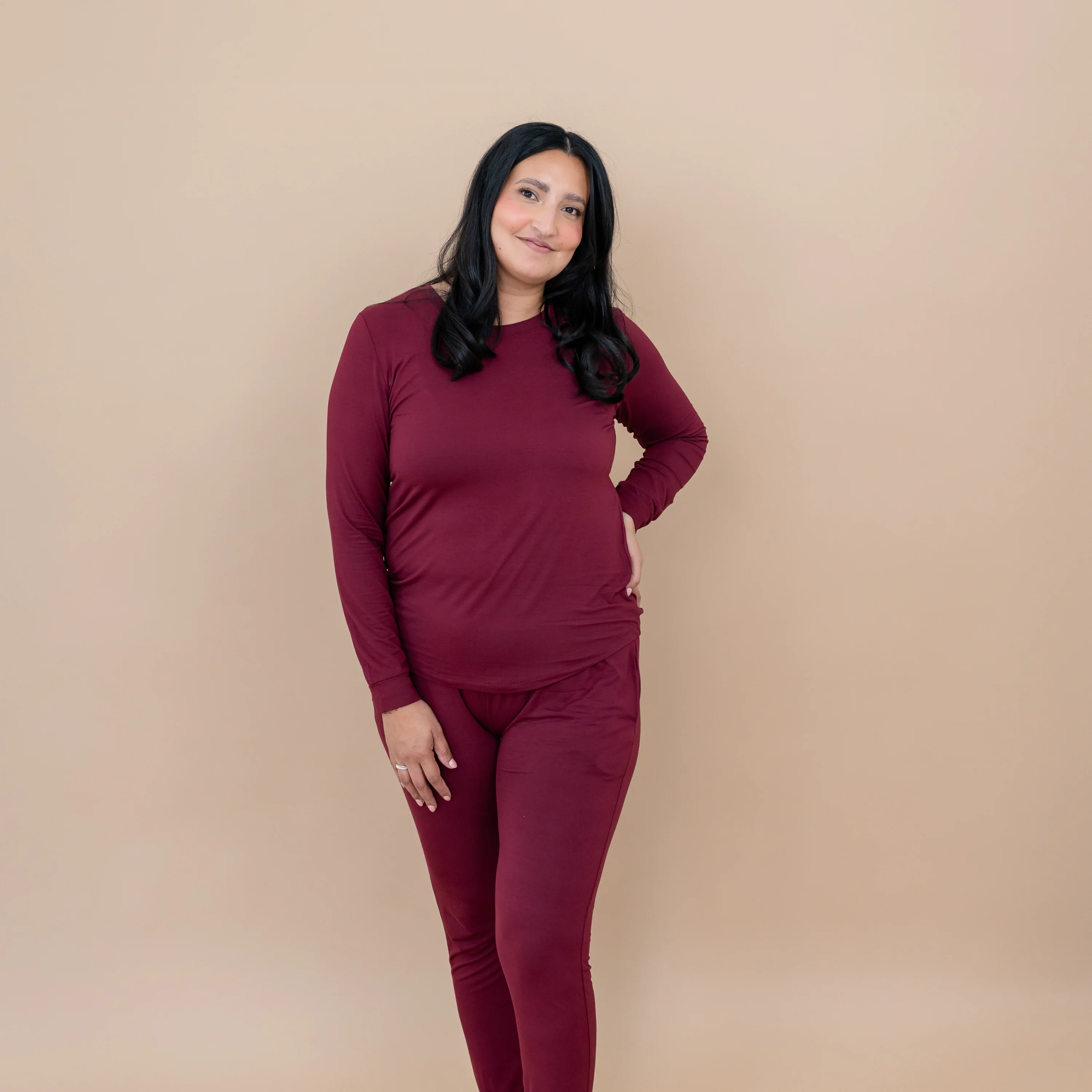 Relaxation, comfort, breathable - all words to describe our luxurious Women's Jogger Pajama Set. Perfect for curling up in your favorite chair with a hot cup of tea and a good book. Take your loungewear game to the next level with our jogger pajama set. Designed for comfort, this bamboo set includes a long sleeve crew and jogger-style pants.