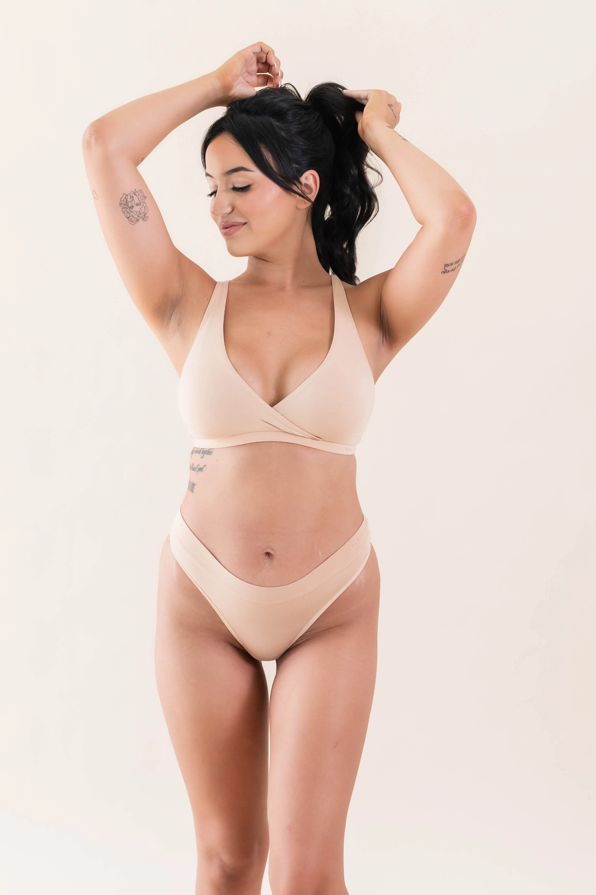 Crafted from a fabric blend of bamboo lyocell and chitosan, these undies offer a barely-there feel and incredible moisture-wicking properties to keep you dry and healthy. Our women’s bamboo thong comes in our Chai colorway, the perfect nude for medium-light skin tones. We believe every body deserves comfortable, quality undergarments, so we offer our Women’s Thong in Chai in inclusive sizes ranging from XS to XXL.